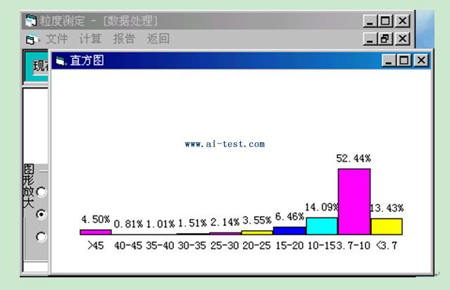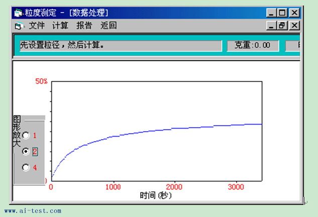 屏幕上,沉降結束后,可將曲線儲存起來,以便隨時調用,然后進行顆粒度計算,計算結果可以表和圖形式打印出