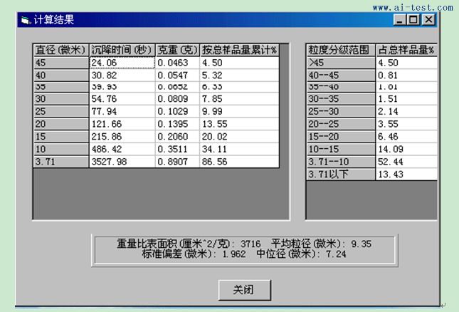 沉降曲線采集、存儲、調用;顆粒大小、中位徑、平均粒徑、比表面積測定;平均 誤差計算;顆粒分布分析;計算結果、圖表打印 |