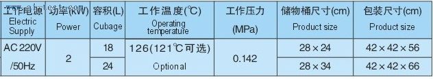 | A101134 | 手提式不銹鋼壓力蒸汽滅菌器(煤電兩用型、防干燒型):容積:24L;儲物桶尺寸cm:28×34;包裝尺寸cm:42×42×66;其他參數與A101133一樣;品牌:中國 | 2125 | 洽詢 | 備注 |