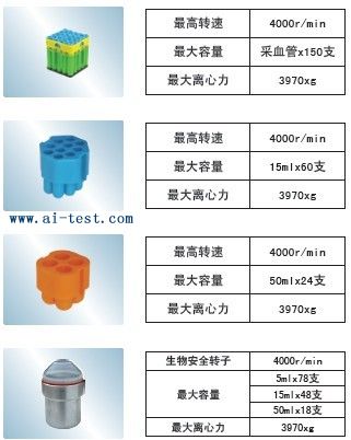 | AL1332764 | 2號水平轉子:最高轉速:4000r/min;最大離心力:3970×g;適配器規格及容量:真空采血管×150支;品牌:中國 | 1 | 600 | 洽詢 | 備注 | |