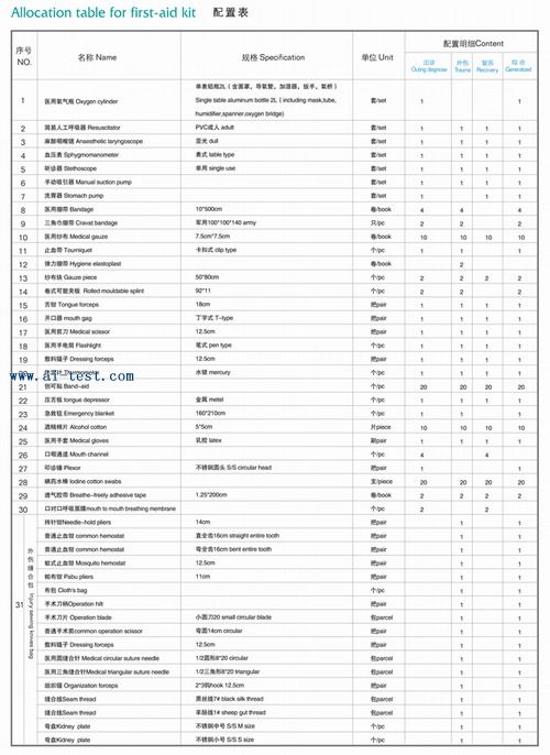 | AM5000092 | 急救包;采用無污染防水等級尼龍布材料制成,內部結構緊湊,設計合理;紙箱包裝(1套)Packing(1pc);尺寸(Size):65×34×30cm;品牌:中國。 | 1 | 洽詢 | 洽詢 | 備注 |
