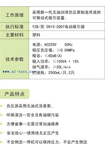 ※ 采用高效柱塞泵,無需加油潤滑、無污染,壽命長; ※ 吸引泵為… 洽詢 1600 電動吸引器