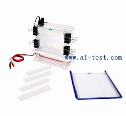 凝膠面積(W×L):230×95(mm)凝膠厚度:1.0(mm)梳子齒數:54凝膠板數:2緩沖液容積:2000 |